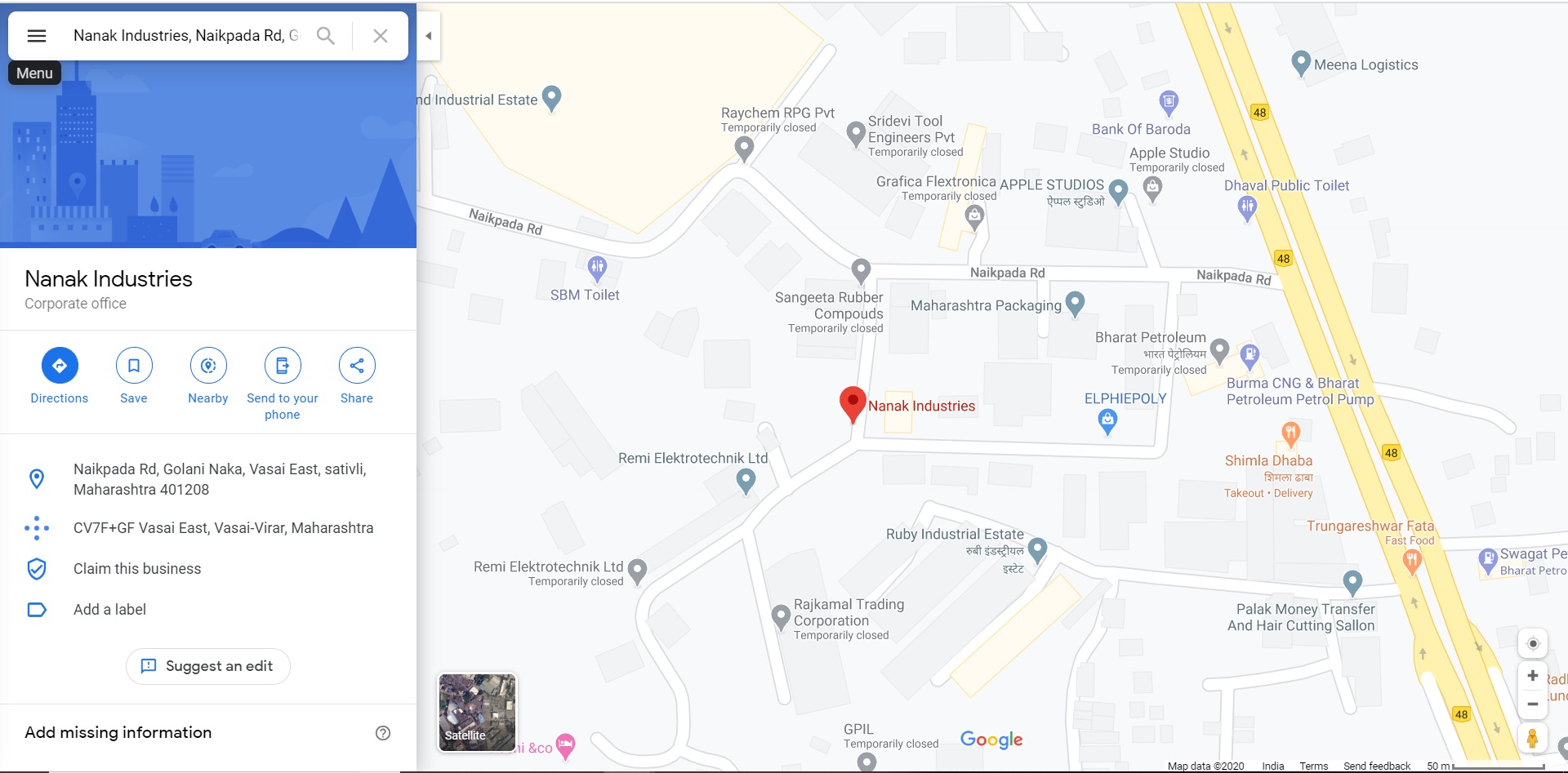 Geeta Industrial Estate No.5, Gala No.5, N.H-8, Behing Burmashell Petrol Pump, Waliv, Vasai East, Palghar, Maharashtra-401208.